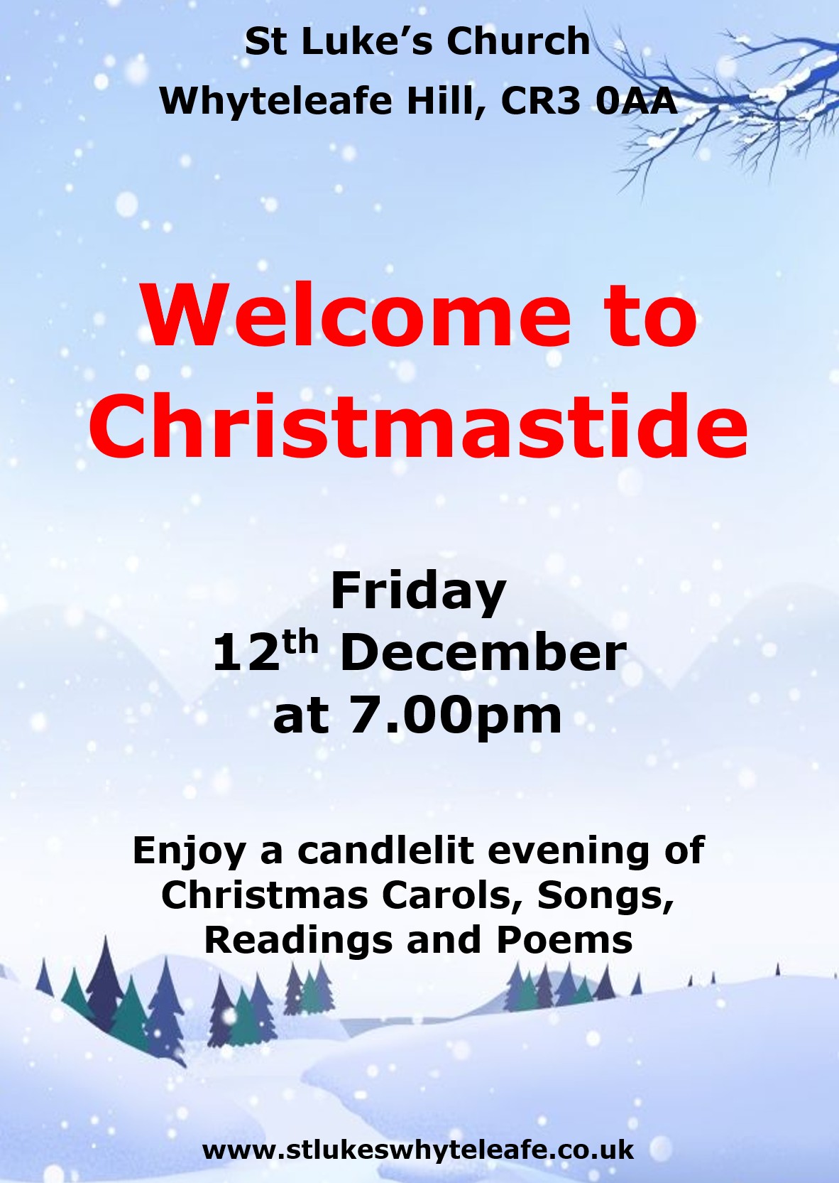 12th December 2025, 7:00 pm: Welcome to Christmastide A candlelit evening of Carols, Songs, Readings and Poems
